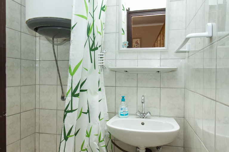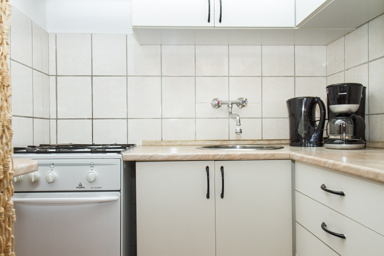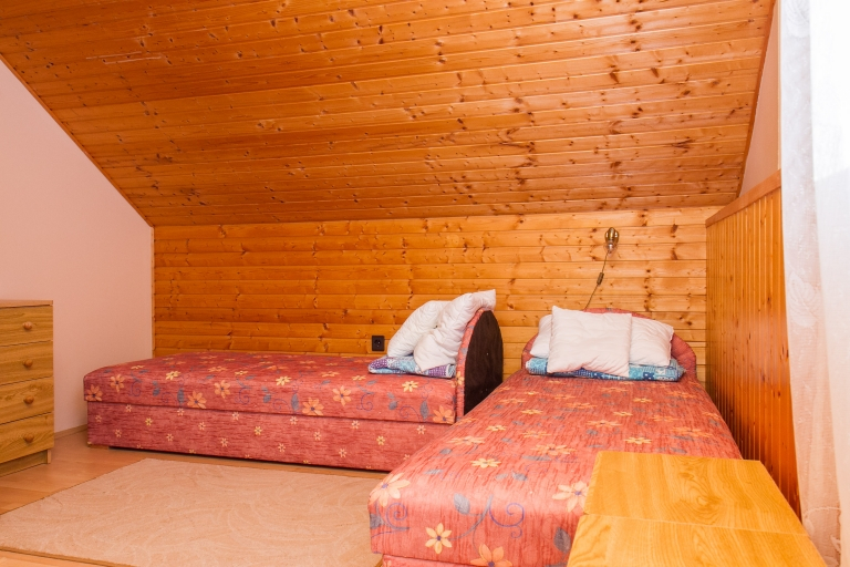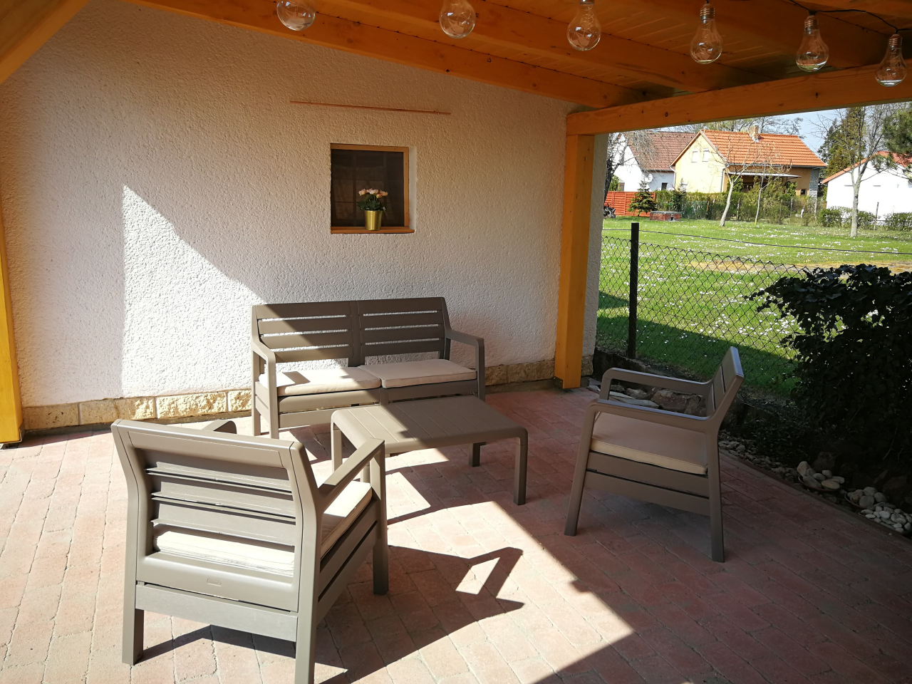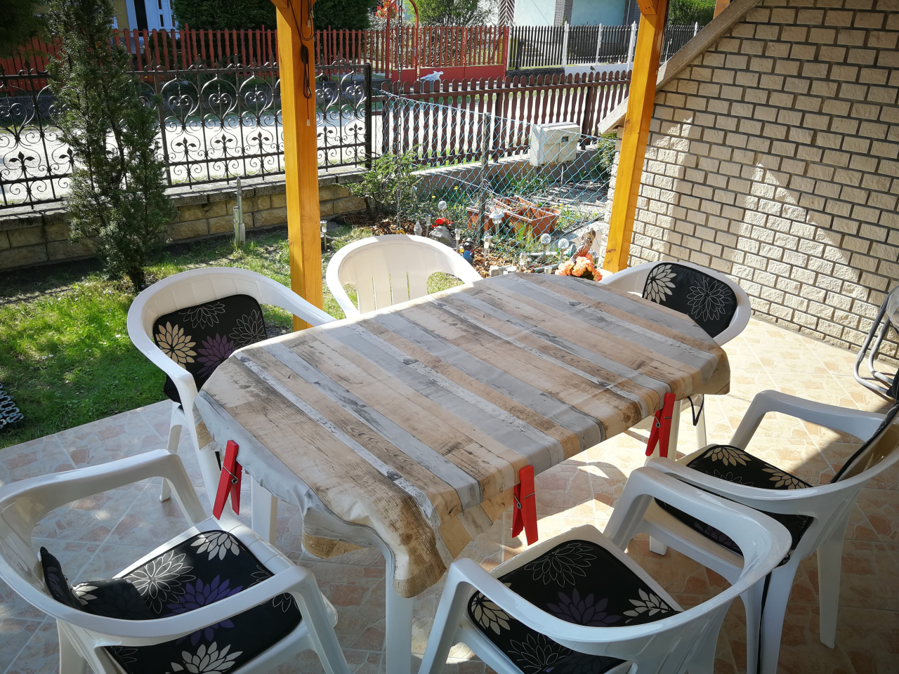 Földszint: Étkező, főzőfülke, zuhanyzó, WC, egy kétágyas szoba, fedett terasz