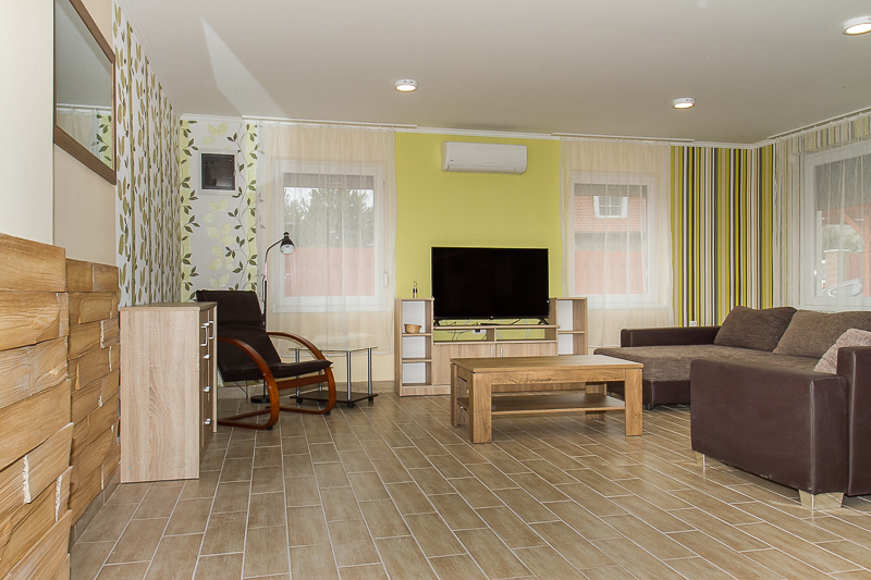 Klimatizált ikernyaraló fele 4-6 főre nyugodt, strandközeli helyen wifivel. Kert, kerti bútor, kertigrill, fedett autóbeálló, Sat-TV, klíma ( felárért ). A nyaraló másik fele is bérelhető ( BM 72/B ).