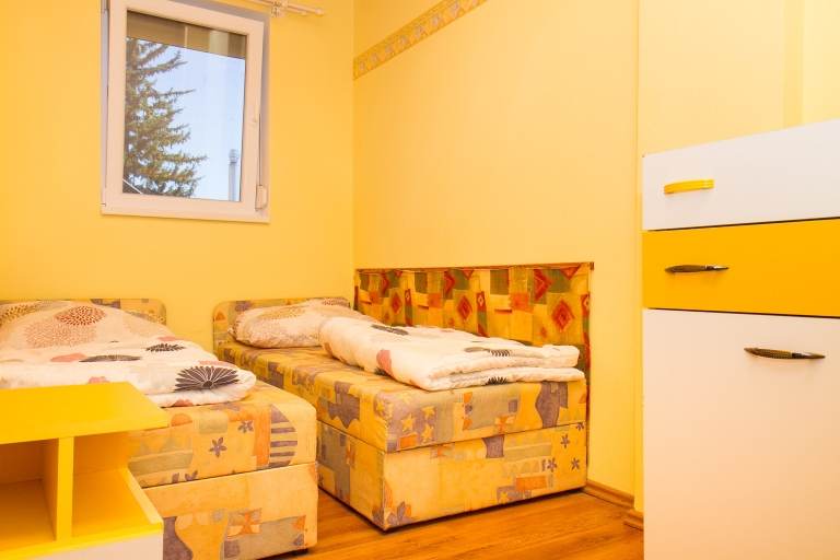 Emelet: Három kétágyas szoba, fürdőszoba/WC.